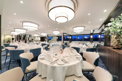 Zahlreiche Mitarbeiter in Küche und Restaurant sorgen täglich für Ihr leibliches Wohl an Bord. Genussvolle Menüs durch fest eingespielte Küchenteams werden für Sie zubereitet."Essen, was das Herz begehrt" - Zahlreiche Mahlzeiten von früh bis spät - einschließlich Nachmittags-Kaffeezeit, Kapitänsempfang und Kapitäns-Dinner mit festlichem Menü. Essen ohne eng gefasste Essenszeiten immer in einer Tischzeit! Auf Wunsch servieren wir Ihnen auch Gerichte für spezielle Diäten (Diabetiker, Glutenfrei, Laktosefrei, Vegan etc.)